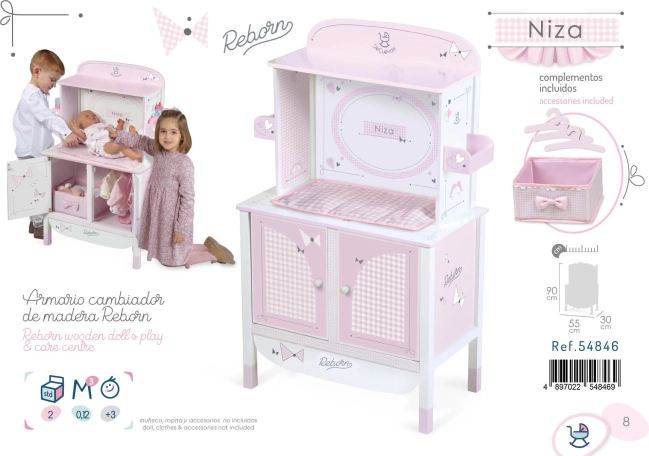 Grazie al preciso design spagnolo e ai materiali accuratamente selezionati, l’armadio risulta leggero e pulito. Le dimensioni pratiche garantiscono stabilità e spazio sufficiente per tutto il necessario per la cura della bambola fino a 45 cm di lunghezza.