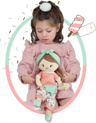 La bambola di peluche Sweet appartiene a una collezione amata con motivi giocosi di tortine e gelati. Grazie al corpo morbido è sicura e adatta anche per la culla. Il peso ridotto e le dimensioni compatte la rendono la compagna perfetta in viaggio e a casa.