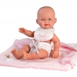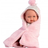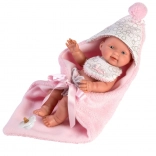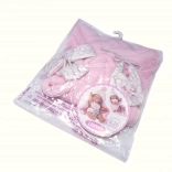 Questo abito a due pezzi è stato progettato appositamente per la bambola neonato New Born di 26 cm. Include una coperta reversibile con cappuccio che protegge la bambola e le dona l'aspetto di un vero neonato.