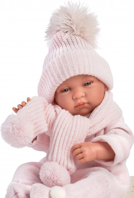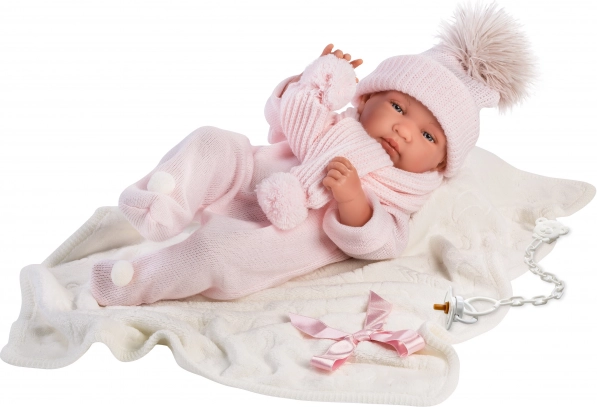 Stiloso set da 3 pezzi per bambola neonato New Born del marchio Llorens, dimensione 43-44 cm, contiene una coperta decorativa in pile con fiocco. Prodotto in Spagna e offre un aspetto perfetto per le vostre bambole.