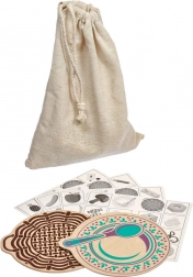 56 tessere in legno + 2 basi + 4 schede in bianco e nero