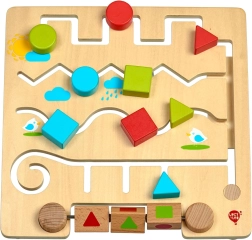 Labirinto in legno con forme geometriche e schede modello LUCY & LEO