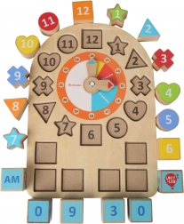 Le lancette mobili e il quadrante chiaro guidano i bambini alla comprensione dell’ora analogica. I cubi AM/PM aiutano a distinguere i momenti della giornata e introducono le basi dell’inglese.