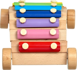 La base in legno con ruote permette di trainare o spingere lo xilofono, rendendo l'apprendimento musicale ancora più divertente.