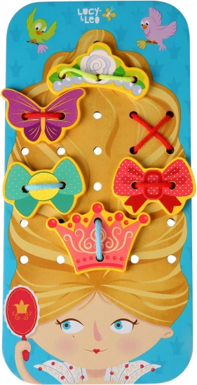Scopri il creativo set di infilatura in legno Principessa di Lucy & Leo – un gioco divertente per sviluppare motricità fine, creatività e pensiero logico. I bambini decorano i capelli della principessa con accessori colorati tramite l’infilatura, allenando coordinazione occhio–mano, riconoscimento dei colori e distinzione delle forme. Un’ottima scelta come strumento Montessori per l’età prescolare.