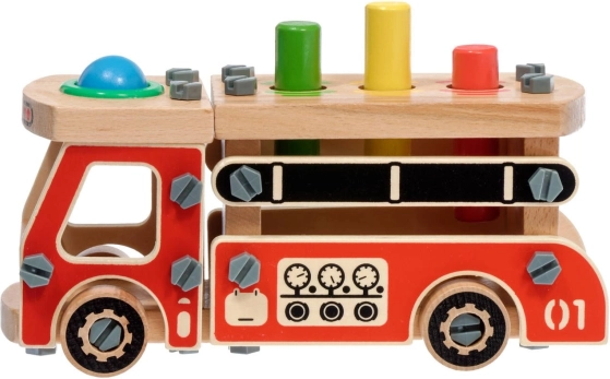 Questo set creativo unisce un kit di costruzione e un banco da martellare in uno. I bambini prima assemblano un robusto camion dei pompieri in legno e poi sfruttano i quattro fori sul cassone per martellare divertenti elementi colorati. Grazie ai colori vivaci e alle forme varie, il giocattolo favorisce l’apprendimento naturale e la concentrazione.
