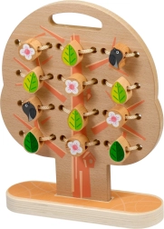 Infilare i lacci e spostare le tessere in legno favorisce la corretta presa, la precisione dei movimenti e la concentrazione.