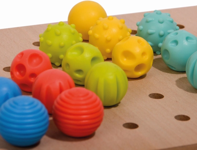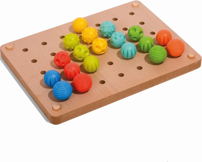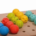 Il set include 35 pioli con differenti texture superficiali, ideali per lo sviluppo sensoriale dei bambini.
