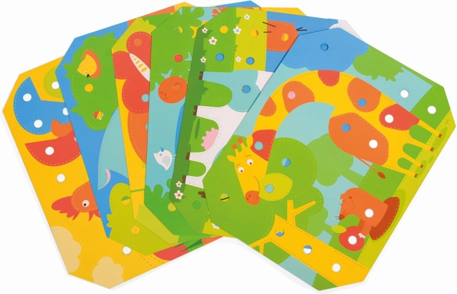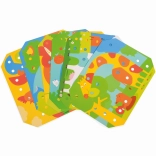 La confezione contiene 12 immagini colorate con animali e 6 sagome bifacciali, che offrono numerose possibilità creative.
