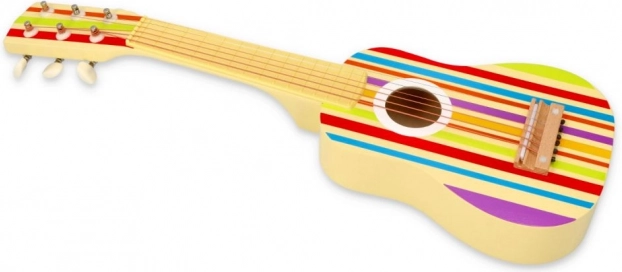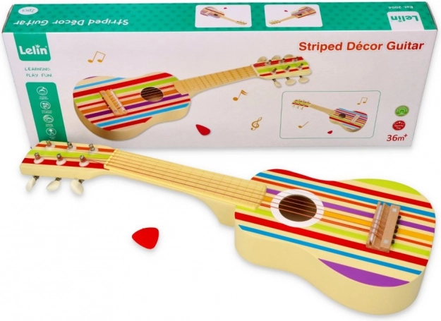 La chitarra colpisce per il suo motivo a strisce dai colori vivaci, che affascina ogni bambino.