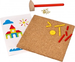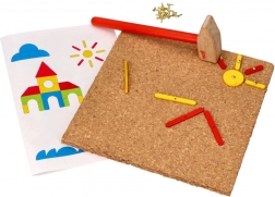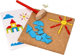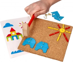 I bambini migliorano la loro motricità fine e la coordinazione occhio-mano mentre compongono diverse forme e immagini sulla tavola di sughero.