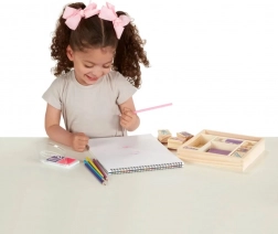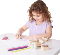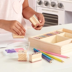 Set di timbri divertente e creativo per bambini dai 4 anni, che supporta le loro abilità artistiche e la fantasia. Tutto è elegantemente confezionato in una scatola di legno.