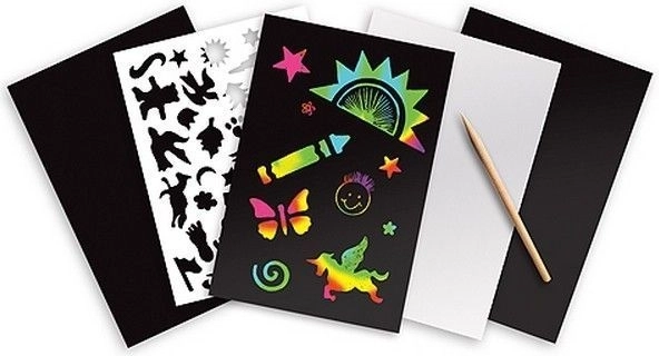 Scopri la gioia di creare immagini uniche con la tavoletta arcobaleno scintillante da grattare. Questo prodotto stimola la creatività e l'immaginazione dei bambini ed è ideale per chi ama creare. Ogni immagine può essere incorniciata, arricchendo qualsiasi cameretta o sala giochi.
