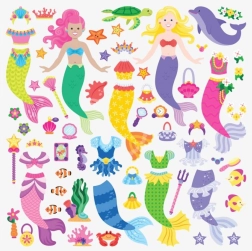 - 65+ adesivi riutilizzabili con sirene, pesciolini, cavallucci marini e accessori