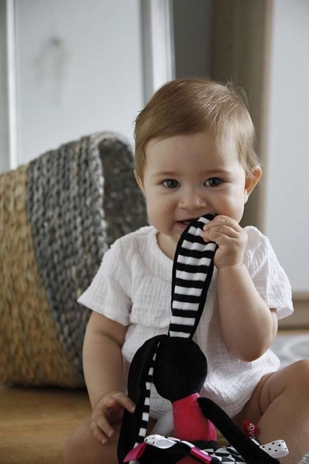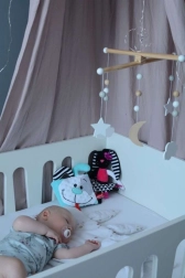 Le strisce bianche e nere e i colori vivaci attirano l’attenzione del bebè e favoriscono un sano sviluppo della percezione visiva sin dalla nascita.