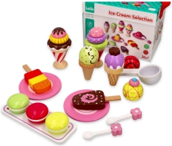 Colorati gelati in legno e dolcetti incoraggiano i bambini a inventare la propria storia di gelatai e a giocare a ruoli.