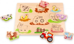 Adorabile puzzle di legno ideale per i bambini che amano la fattoria. Permette ai bambini di sviluppare la motricità e imparare a conoscere il mondo che li circonda.