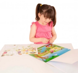 Gli adesivi si possono attaccare e spostare più volte, così i bambini possono cambiare facilmente la storia e comporre nuove scenette.
