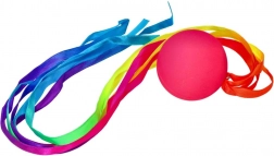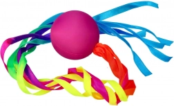 I nastri multicolori collegati alla pallina conferiscono a ogni lancio dinamicità e varietà di movimento.