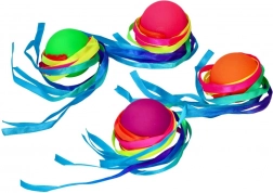 Il giocattolo, che combina una pallina colorata decorata con nastri variopinti, offre un’esperienza interattiva e visivamente attraente. La pallina è leggera e facile da usare, ideale per attività all’aperto e giochi di movimento per i bambini.