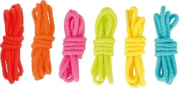 Il set contiene perline di legno colorate e cordini sufficientemente lunghi, ideali per progetti creativi.