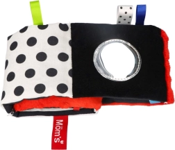 Il libro offre elementi interattivi – nastrini da afferrare, pannelli fruscianti, specchietto sicuro e materiali diversi (spugna, minky) che stimolano più sensi contemporaneamente. Supporta lo sviluppo della vista, la coordinazione occhio–mano, il riflesso di presa e l’integrazione sensoriale.