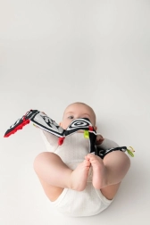 Il libricino sensoriale rosso è progettato per neonati e lattanti 0+. L’elevato contrasto delle grafiche in bianco e nero con accenti rossi cattura naturalmente l’attenzione del bambino, mentre la morbida imbottitura e le varie texture invitano al tocco. Grazie alle dimensioni compatte si porta facilmente nel passeggino o si fissa nel campo visivo del neonato.