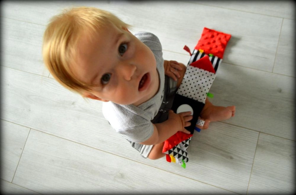 Morbida imbottitura, minky, spugna, asole e elementi fruscianti incoraggiano il bambino ad afferrare, schiacciare ed esplorare con tatto e udito.