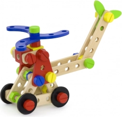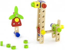 Un'ampia selezione di viti, dadi, piastre e ruote permette di costruire decine di modelli – dagli animaletti ai veicoli e agli elicotteri. Ideale per sviluppare fantasia e pazienza.