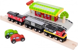 La pista di legno CN offre momenti divertenti e creativi per i vostri bambini. Si compone di un treno merci e binari che i bambini possono facilmente assemblare ed espandere con altri set disponibili. Questo giocattolo: