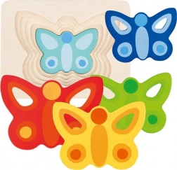 Scopri il puzzle a strati con colorate farfalle del brand GOKI. I bambini si divertiranno a comporre mentre sviluppano motricità fine, riconoscimento dei colori e pensiero logico. I pezzi sono cinque e in ogni strato entra solo una farfalla, favorendo pazienza e apprendimento sequenziale.