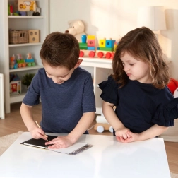 Senza colori e senza disordine: basta uno stilo per graffiare e i bambini possono creare subito ovunque, a casa e a scuola.
