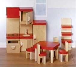 Questa cucina per bambole del marchio GOKI offre ai bambini un gioco realistico in un ambiente familiare. Il look senza tempo e la lavorazione di qualità in legno massello garantiscono lunga durata e utilizzo sicuro. Il set è compatibile con tutte le case delle bambole GOKI.