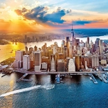 Questi puzzle catturano una vista affascinante di New York al tramonto, in tonalità oro e blu.