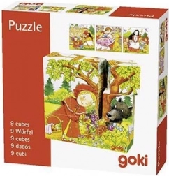 I cubi in legno per bambini a tema fiabe di Goki offrono un gioco di composizione gioioso e i primi racconti di storie. Con 9 cubi componete 6 scene colorate tratte da classici amati – ad esempio Cappuccetto Rosso, Biancaneve e i sette nani, La Bella Addormentata, Hansel e Gretel o Cenerentola. Ogni rotazione del cubo rivela un nuovo pezzo dell'immagine e i bambini allenano logica e pazienza.