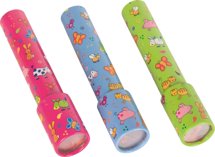 Scopri la magia dei motivi colorati con il caleidoscopio Goki In fattoria. Questo classico giocattolo crea grazie a un sistema di specchi e corpuscoli colorati affascinanti figure quando lo si guarda controluce. Con i motivi degli animaletti della fattoria conquisterà i piccoli esploratori e offrirà un divertimento sicuro e creativo per bambini dai 3 anni in su.
