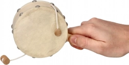 Presentiamo il tamburello naturale con perline, ideale per piccoli musicisti dai tre anni in su. Grazie al manico in legno e alla superficie del tamburo in pelle, questo tamburello è non solo estetico ma anche funzionale.