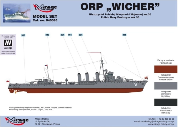 • Fedeltà storica – riproduzione realistica del cacciatorpediniere polacco ORP WICHER.