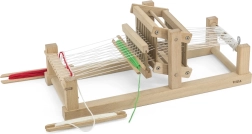 Inizia a tessere subito dopo l'apertura. Il set include un telaio in legno, 3 fili colorati e gli strumenti indispensabili per i primi lavori.
