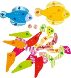Questo colorato gioco in legno del marchio GOKI è progettato per intrattenere ed educare i bambini. Consiste in puzzle di pesci, che devono essere assemblati lanciando i dadi, rendendo il gioco non solo divertente ma anche emozionante. Il produttore pone l'accento sulla sicurezza e la non tossicità dei materiali, che sono rispettosi dell'ambiente.