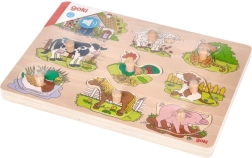Questo puzzle in legno contiene otto pezzi con immagini di animali domestici che, inseriti nell'apertura corretta, emettono un suono caratteristico. Ogni pezzo è dotato di una maniglia in legno, che garantisce un facile utilizzo e una collocazione sicura sulla base. La base in legno con ritagli precisi aiuta i bambini a posizionare i pezzi nei luoghi giusti.