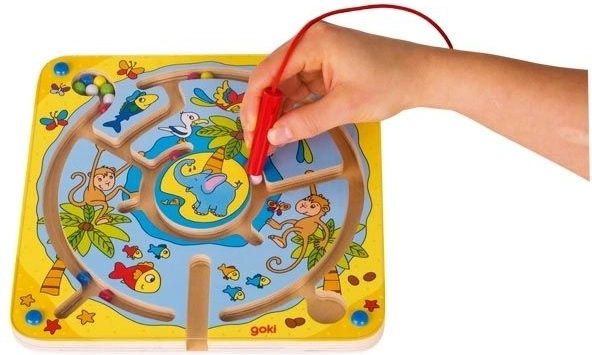 Questo labirinto magnetico è progettato per ispirare i bambini a giocare e imparare. Grazie alla lavorazione in legno e alla costruzione di qualità, il giocattolo è solido e durevole. I bambini possono muovere le palline colorate in due modi - tradizionalmente con la bacchetta magnetica oppure dividendo le palline per colore verso diversi obiettivi.