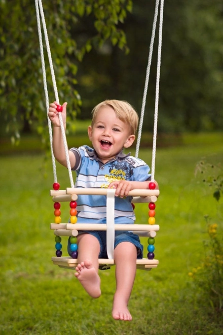 Questa affascinante altalena in legno colorata è il complemento perfetto per ogni giardino, offrendo ore di divertimento ai bambini. Progettata per bambini di età superiore a 1 anno, offre comfort e sicurezza grazie a materiali di alta qualità e conformità alle norme CE.
