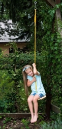 Il montaggio è rapido: il piatto si appende tramite anello metallico alla corda di sospensione. Per una rotazione fluida si consiglia un gancio girevole (non incluso). La lunghezza totale della corda, altalena compresa, è di 180 cm, offrendo un’altezza di sospensione ottimale per un’oscillazione sicura.
