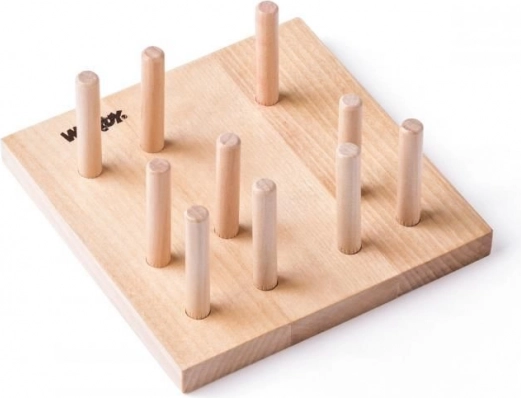Il colorato puzzle in legno sviluppa la motricità fine, la coordinazione occhio–mano e la capacità di distinguere colori e forme. Sulla solida base in legno ci sono dei pioli su cui i bambini infilano cerchi, rettangoli, triangoli e quadrati in base al numero di fori.