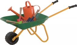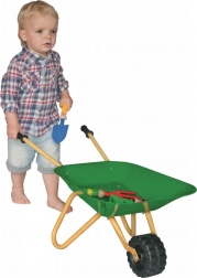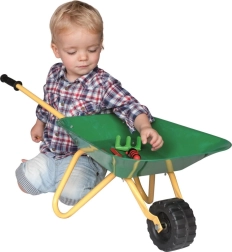 La carriola in metallo per bambini è progettata per piccoli esploratori e giardinieri. Ideale per trasportare giocattoli o materiali durante il gioco all'aperto. La carriola ha un unica ruota nera in plastica, un telaio in metallo e maniglie gialle, che facilitano la maneggevolezza anche per i più piccoli.