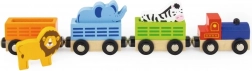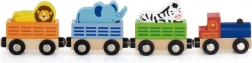 Il trenino in legno con animali dello ZOO è un complemento ideale per i set ferroviari per bambini oppure un gioco autonomo. La locomotiva e tre vagoncini variopinti con leoncino, elefante e zebra si collegano tramite magneti, risultando facili da manovrare: i bambini possono comporre e separare il convoglio liberamente secondo la fantasia.
