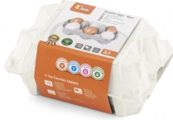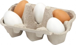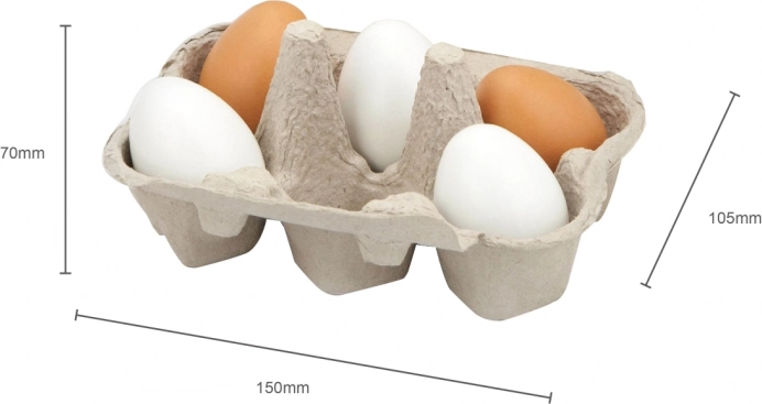 Il set include 6 uova di legno in una pratica vaschetta di cartone che imita fedelmente una confezione reale. I bambini possono imitare gli adulti in cucina, “fare la spesa” nel negozietto o servire piatti nella loro cucina. Il materiale resistente e la superficie laccata liscia sono piacevoli al tatto e facili da mantenere.