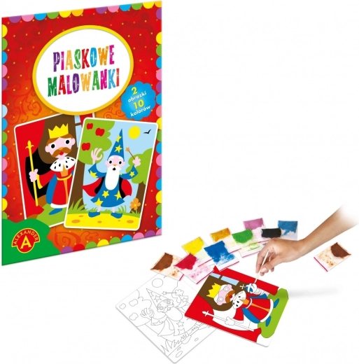 Il gioco artistico della pittura con la sabbia consiste nel rimuovere gradualmente i singoli elementi ritagliati dell’immagine per scoprire la superficie adesiva del frammento scelto. Ogni frammento scoperto viene cosparso di sabbia del colore corrispondente al modello illustrato nelle istruzioni e sulla confezione.