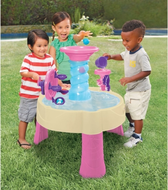 LITTLE TIKES Spiralin' Seas è un divertente parco acquatico che coinvolge i bambini nel mondo degli esperimenti con l’acqua. Grazie al design rosa–beige, alla torre a spirale e alla ruota ad acqua, i bambini osservano il flusso, la rotazione e gli spruzzi mentre sviluppano motricità fine, coordinazione mano-occhio e competenze sociali nel gioco condiviso.